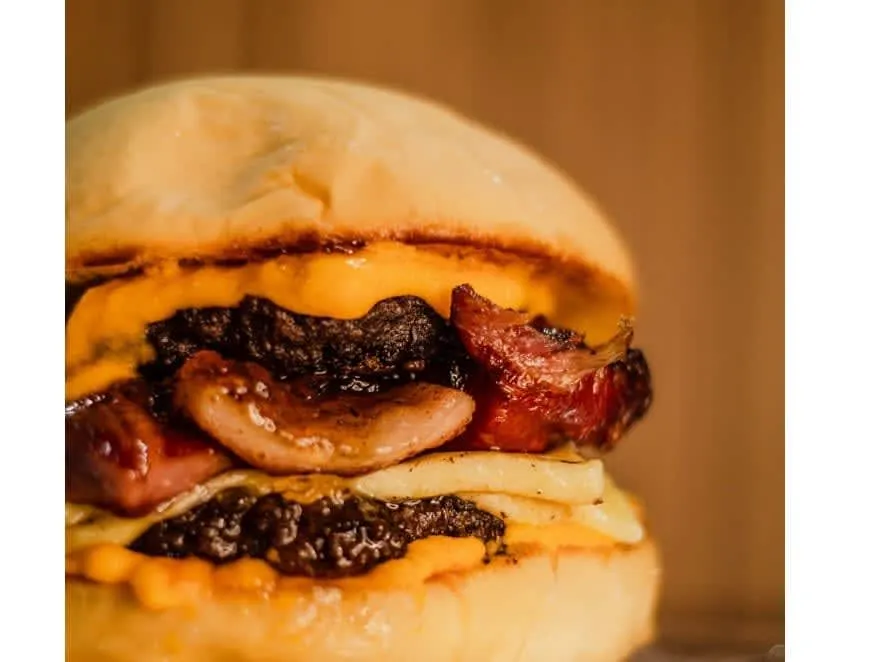 Pão Careca Artesanal, blend bovino, Frango Desfiado, Cheddar Cremoso , Cebola Refogada, Alface, Tomate, Maionese Lions.