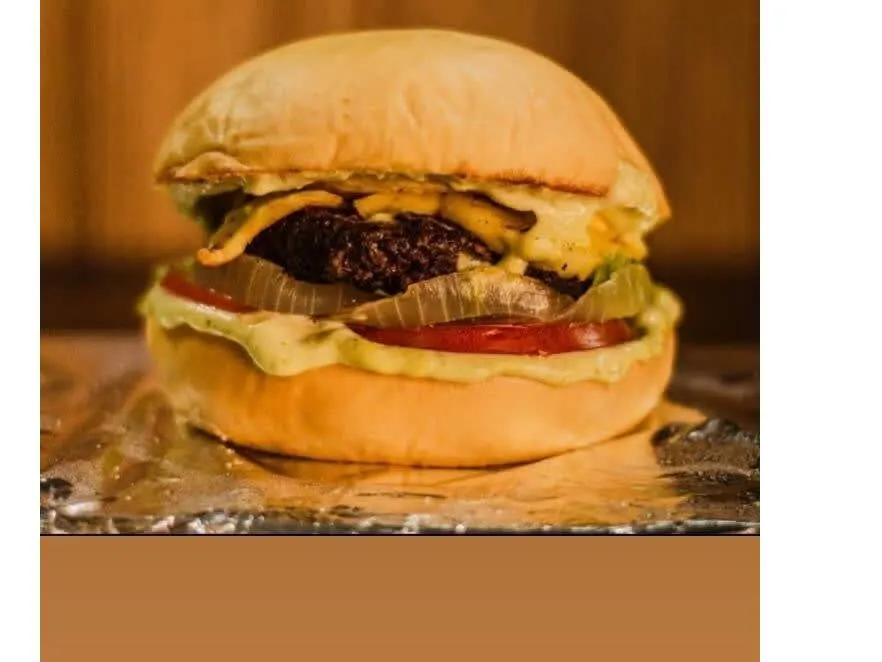 Pão Careca Artesanal, blend bovino, Frango Desfiado, Cheddar Cremoso , Cebola Refogada, Alface, Tomate, Maionese Lions.